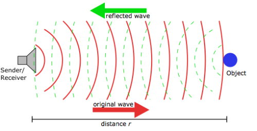 It basically sends a high-frequency wave in one direction, the wave hits an object that reflects the wave. When the wave gets back to the sensor, it calculates the distance depending on the time it takes to go and back. More information can be checked at Wikipedia.