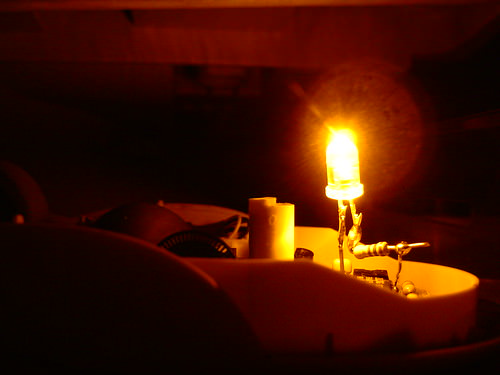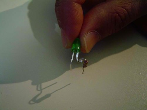 Then I used a resistor to lower the voltage for the LED. It’s not a strong LED…yet