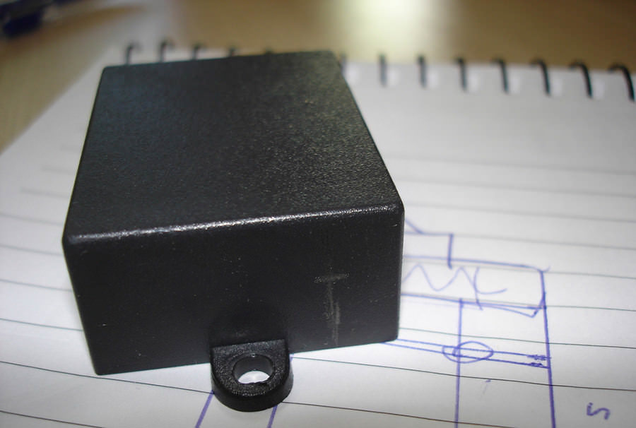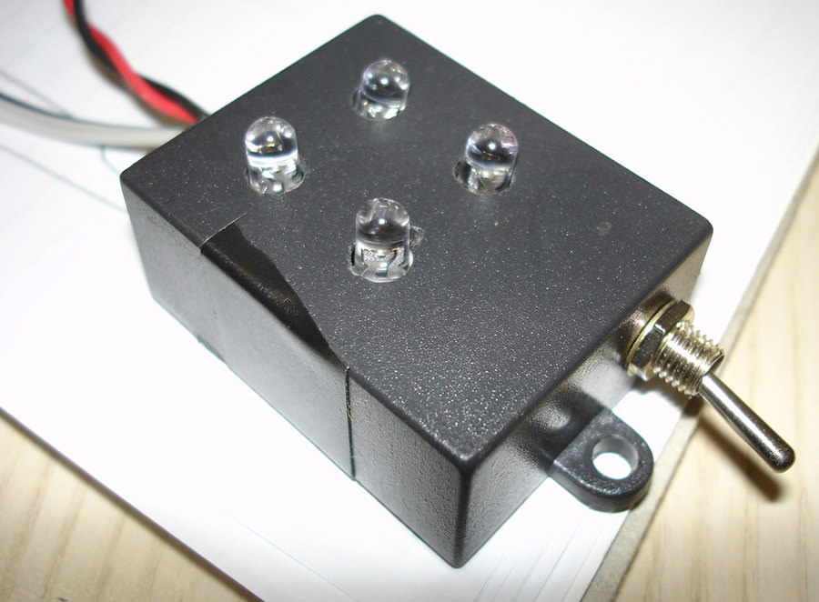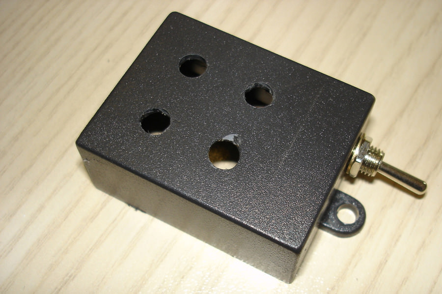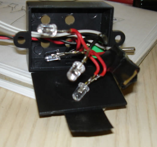 For this project, I decided to install everything inside a small black box I had here and made 6 holes in it. Four in the top for LEDs and one on each side for the switch and cables. You can follow the pictures: