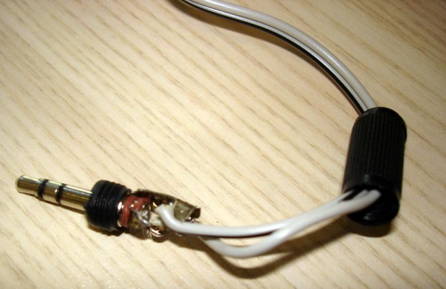 Now it’s time to make the P2 connector. You can see that the P2 connector has 3 pins, they are, left channel, right channel and ground. So you have to decide if you want the left or right channel and then connect it with the left pin from the TIP31. Remember that if you connect the P2 using the left channel, only the right is enabled on the computer and this circuit won’t work. Usually the ground pin is the bigger one, and the others are small and similar. You have to connect the ground from P2 connector to the right pin of the TIP31 (right pin from TIP31 is ground)